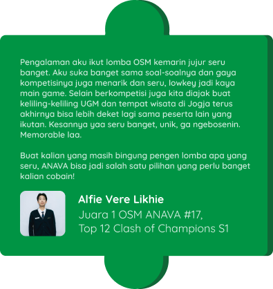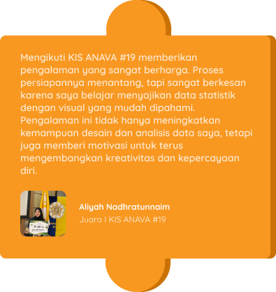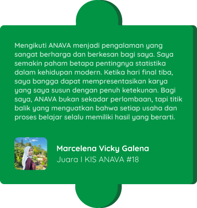 Di ANAVA #20, setiap cabang kompetisi adalah papan permainan tempat para pelajar SMA dan mahasiswa menguji logika dan kreativitas dalam berbagai tantangan seru berbasis data. Baik kamu pejuang UTBK, pecinta olimpiade, atau penggemar data, semua punya tempat untuk bersinar di antara yang terbaik. Siapkan strategimu, pilih lombamu, dan buat langkah terbaikmu!